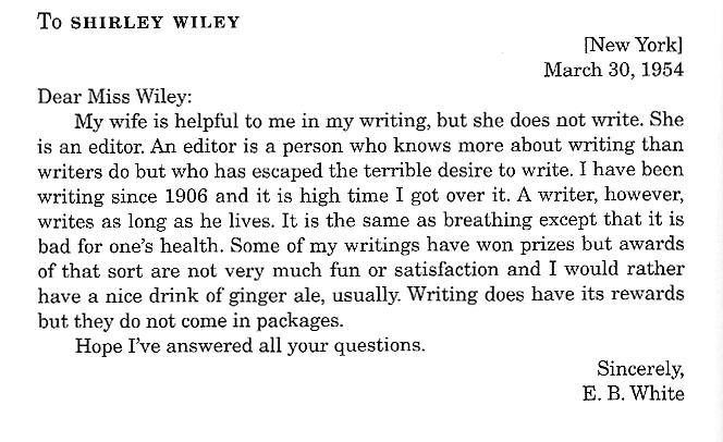 Thank you to Shaun Usher for posting this letter from E.B. White on his Twitter feed and for including it in his book, Letters of Note.
